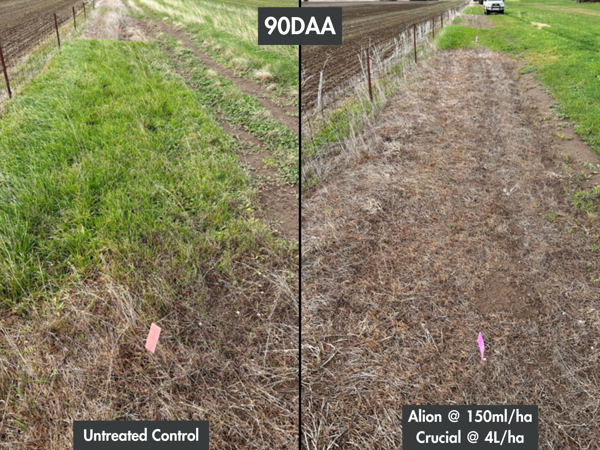 Ideally, the plan would be to spray fencelines while they are bare in early April before you get busy seeding and a follow-up rain comes to incorporate and activate the Alion.