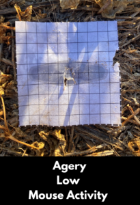 The test which we like is using mouse chew cards. This is done by cutting some strong paper or light card into 10cm x 10cm squares, where each square is marked with a 1cm grid. Cut these squares out, and then soak them in canola or linseed oil. Next, place the cards randomly across a paddock and peg them to the ground. Go back the next day and count the 1cm squares which have been eaten. If more than ten x 1cm squares are eaten per card overnight, considerable mouse populations are emerging. If more than 20 squares per card are eaten, then there is a significant problem.
