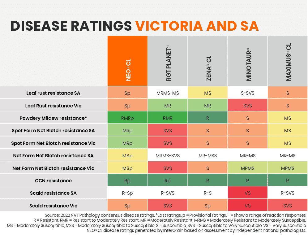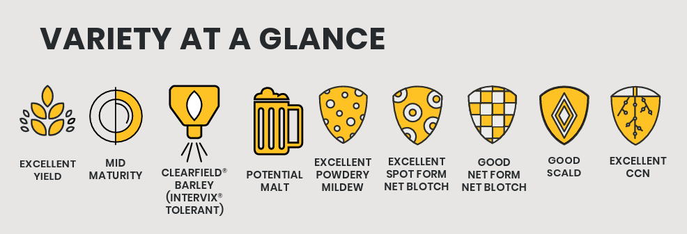 Neo CL is out of InterGrain and is a game-changing barley with an exceptionally high yield potential and outstanding disease package. Cyclops by AGT is broadly adapted and best suits low to moderate rainfall regions.