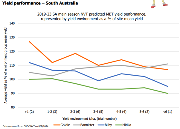 For the 2025 season Intergrain have released Goldie Oats. Goldie is a high yielding milling oat, 4-5% higher than Bannister, topping NVTs across Victoria, Southern NSW and here in SA. It has a mid-spring maturity, 4-7 days earlier to flower than Bannister and similar to Bilby. A tall plant height, 5cm taller than Bannister and 15cm taller than Bilby with good panicle emergence even under tough conditions.